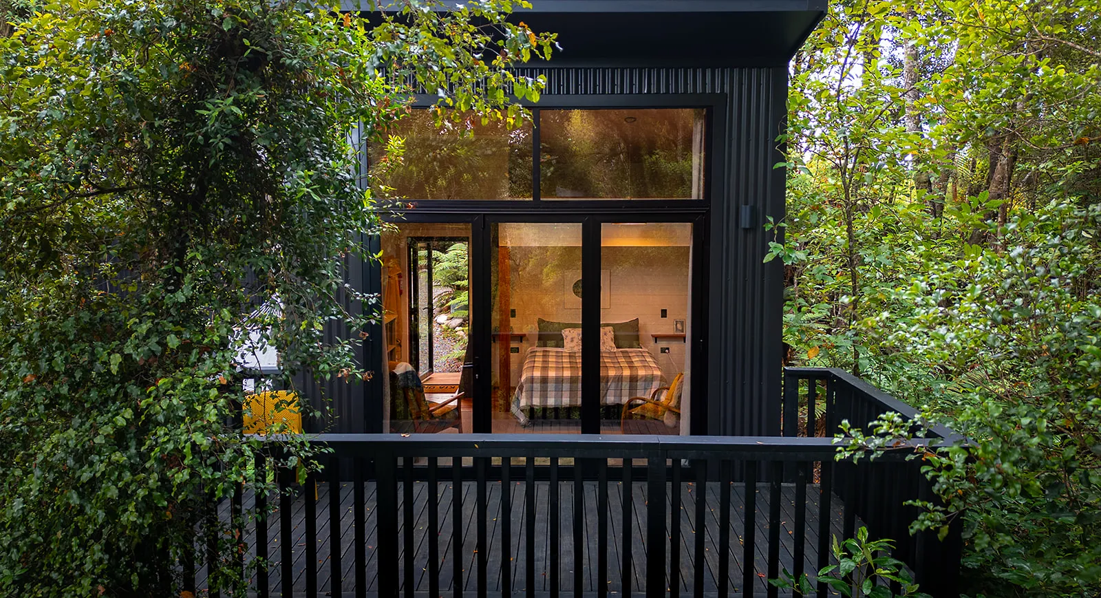Outside, the focus moved to the deck. Lisa sourced the final pieces to complete the space — practical additions and thoughtful touches that made it comfortable and functional without overcomplicating it. The goal was simple: create a place where guests could sit, breathe and take in the forest.