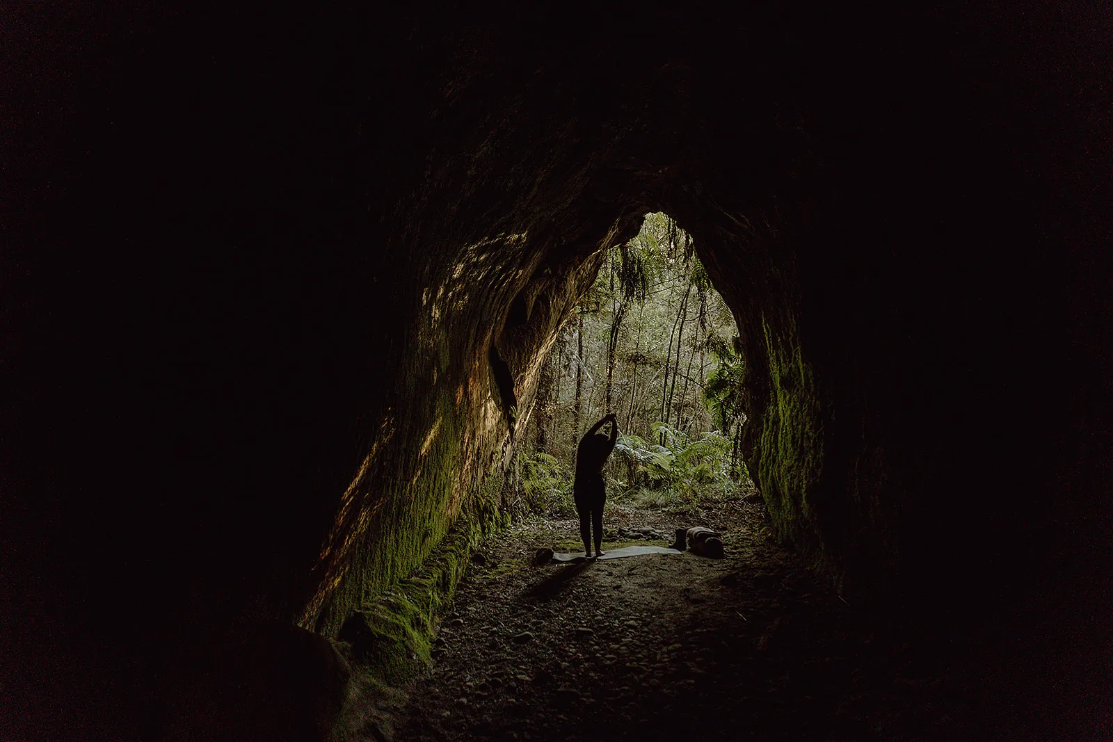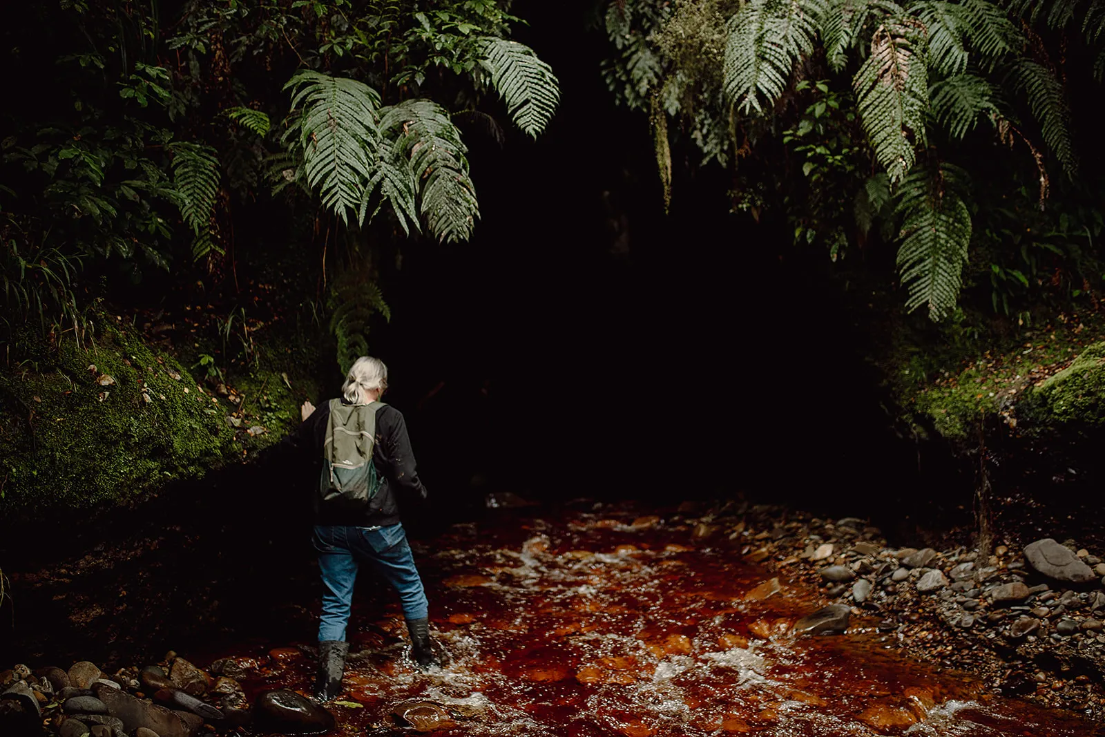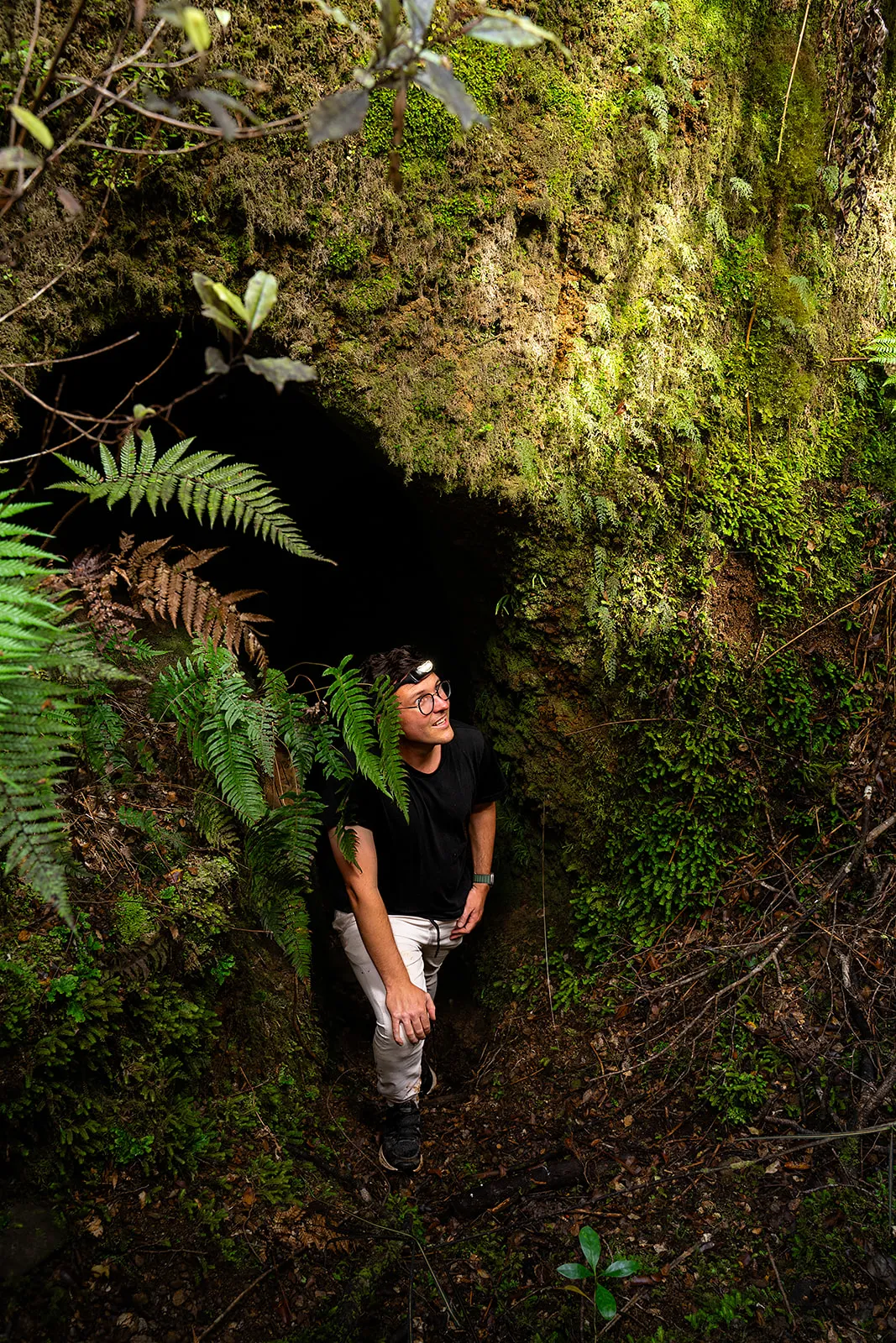 This is not a boardwalk display or commercial cave system. It is raw, West Coast history and ecology intertwined — gold rush relics now reclaimed by moss, water and glow worms.
