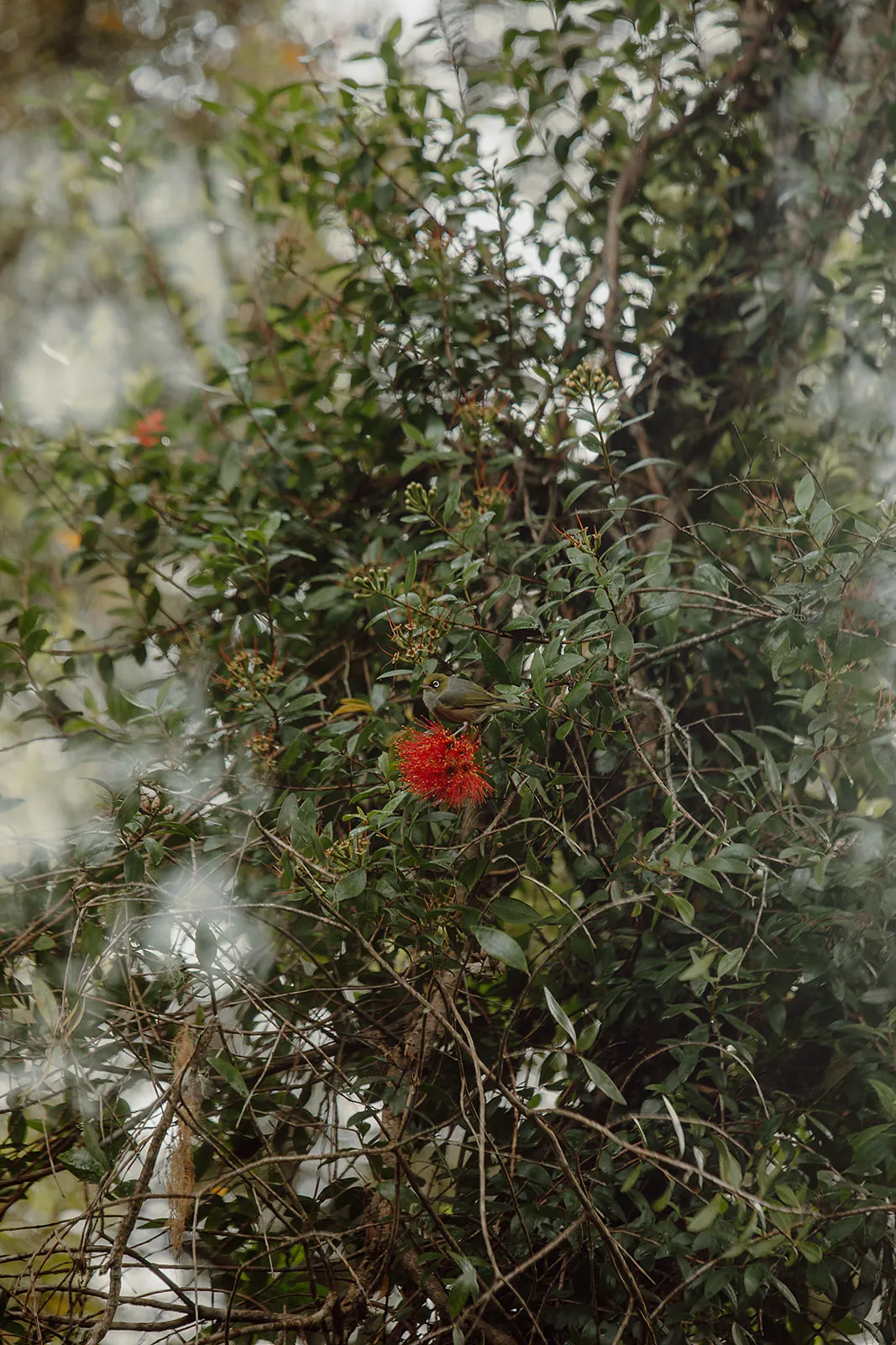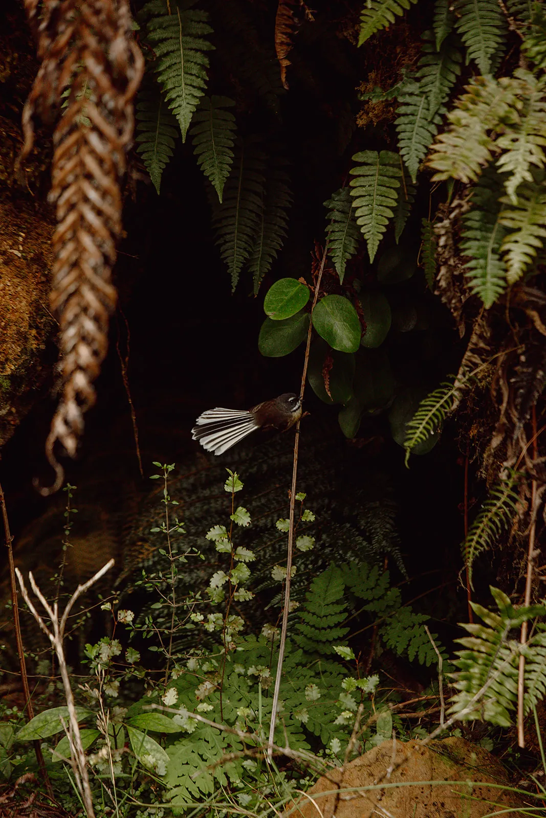 Thanks to ongoing predator control and careful stewardship, the forest is active and alive. Kererū move heavily through the canopy, their wingbeats audible as they cross clearings. Tūī and korimako (bellbirds) carry layered birdsong through the bush, especially in the early morning light. Pīwakawaka (fantails) are regular companions along the tracks, flitting close as you walk.