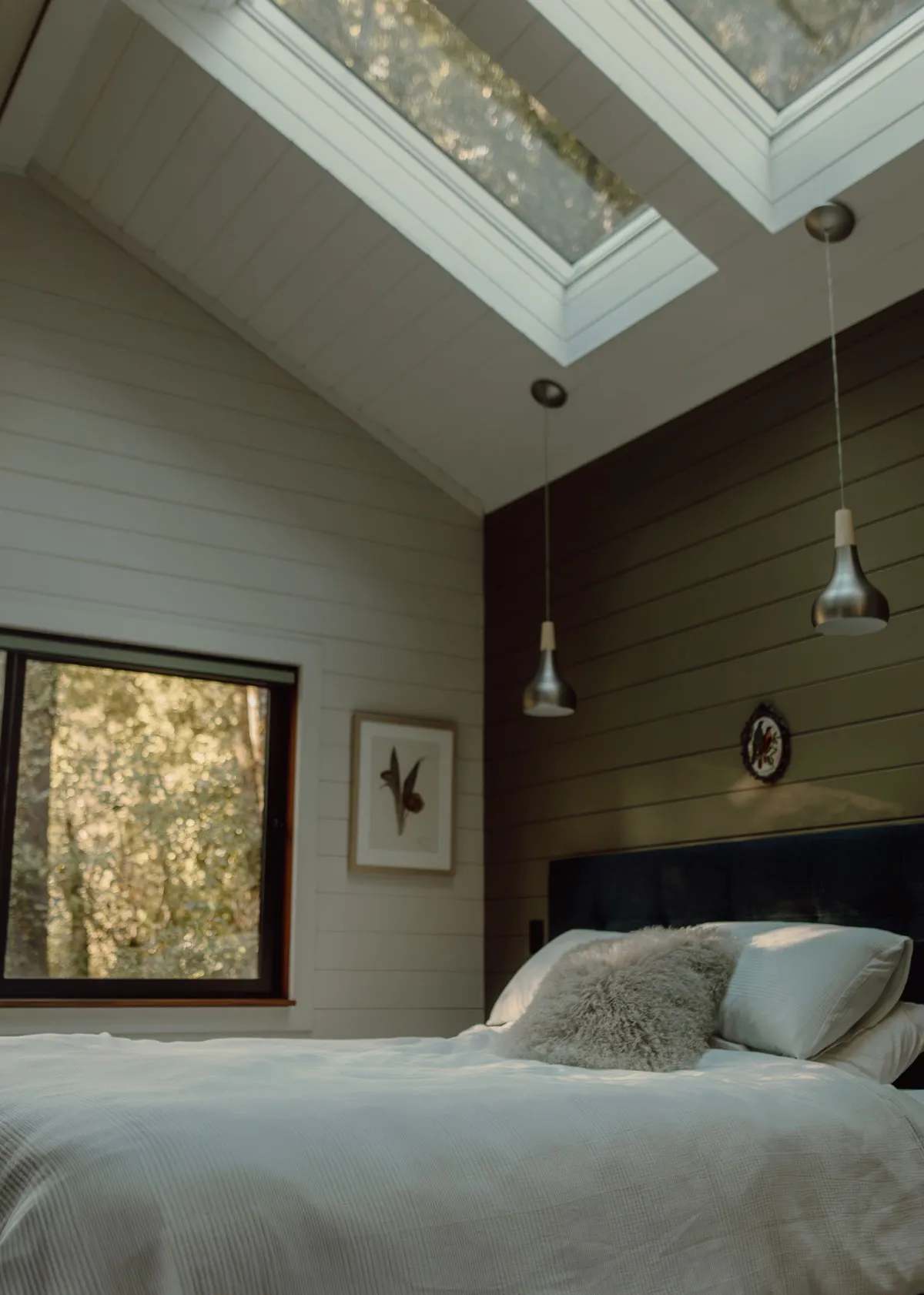 Each treehouse has been handcrafted on site, positioned carefully among mature trees to honour the land rather than dominate it. Elevated within the forest canopy, the design maximises natural light, privacy, and connection to nature, with large windows, skylights, and seamless indoor–outdoor flow. Locally sourced and reclaimed timbers, natural materials, and low-impact building methods reflect our commitment to sustainability and slow, considered development. This is eco-friendly luxury done quietly — not for show, but for longevity and care.