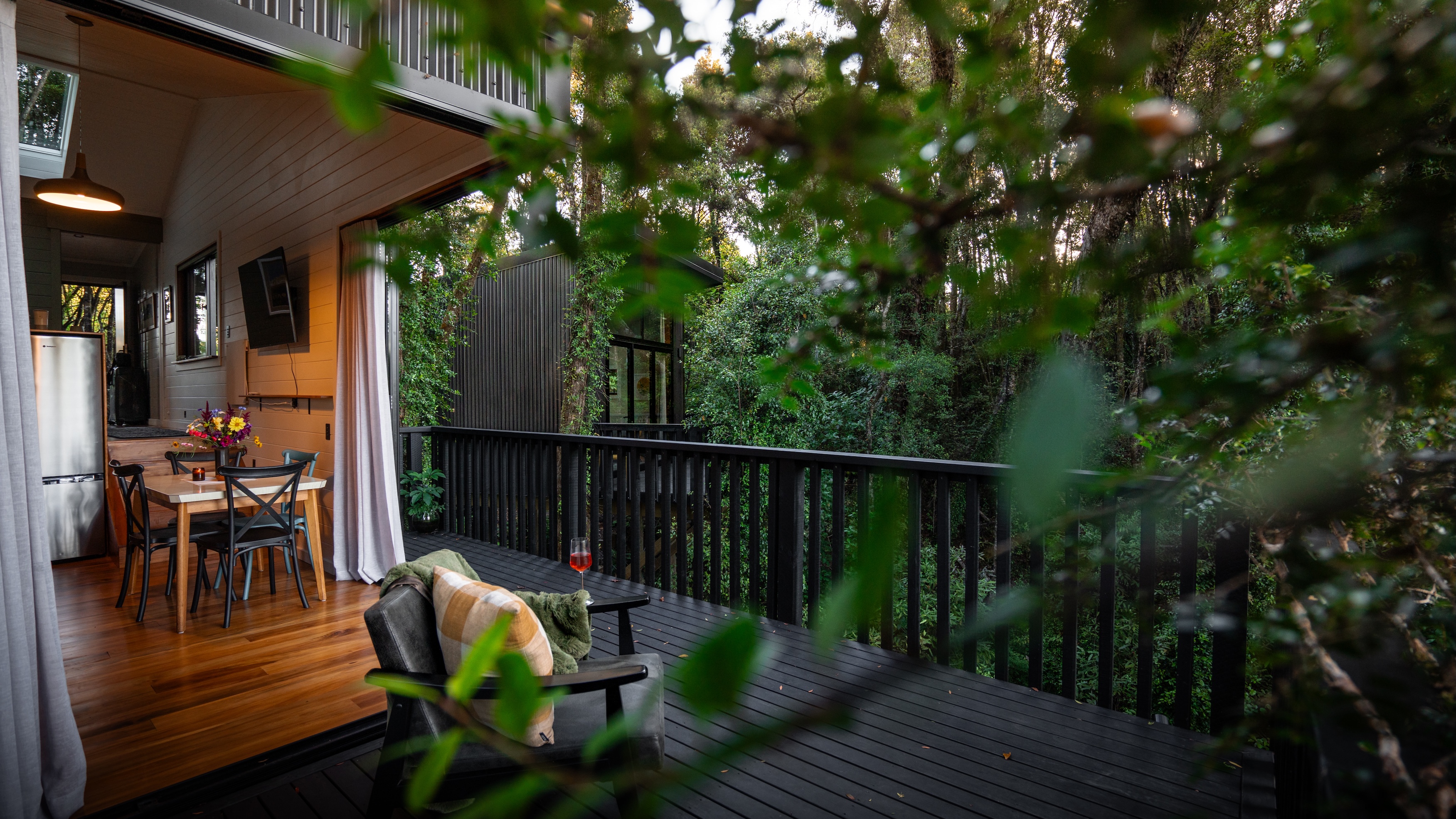 Perched among the trees, our purpose-built treehouse offers privacy, comfort and immersion in the wild landscape of Nelson Creek.